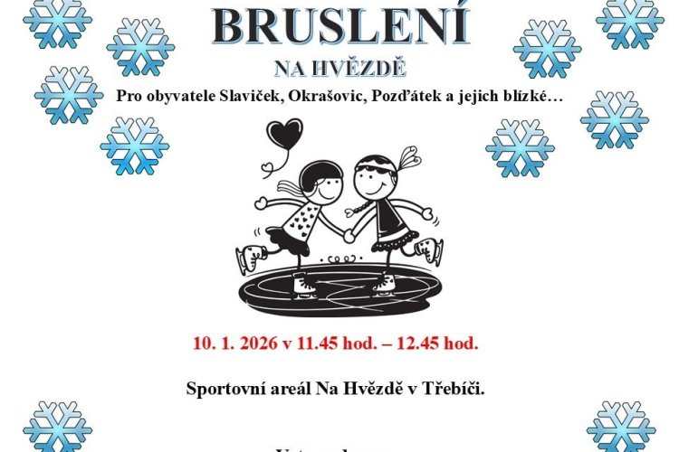 Pozvánka na bruslení zdarma - Hvězda 10.1.2026